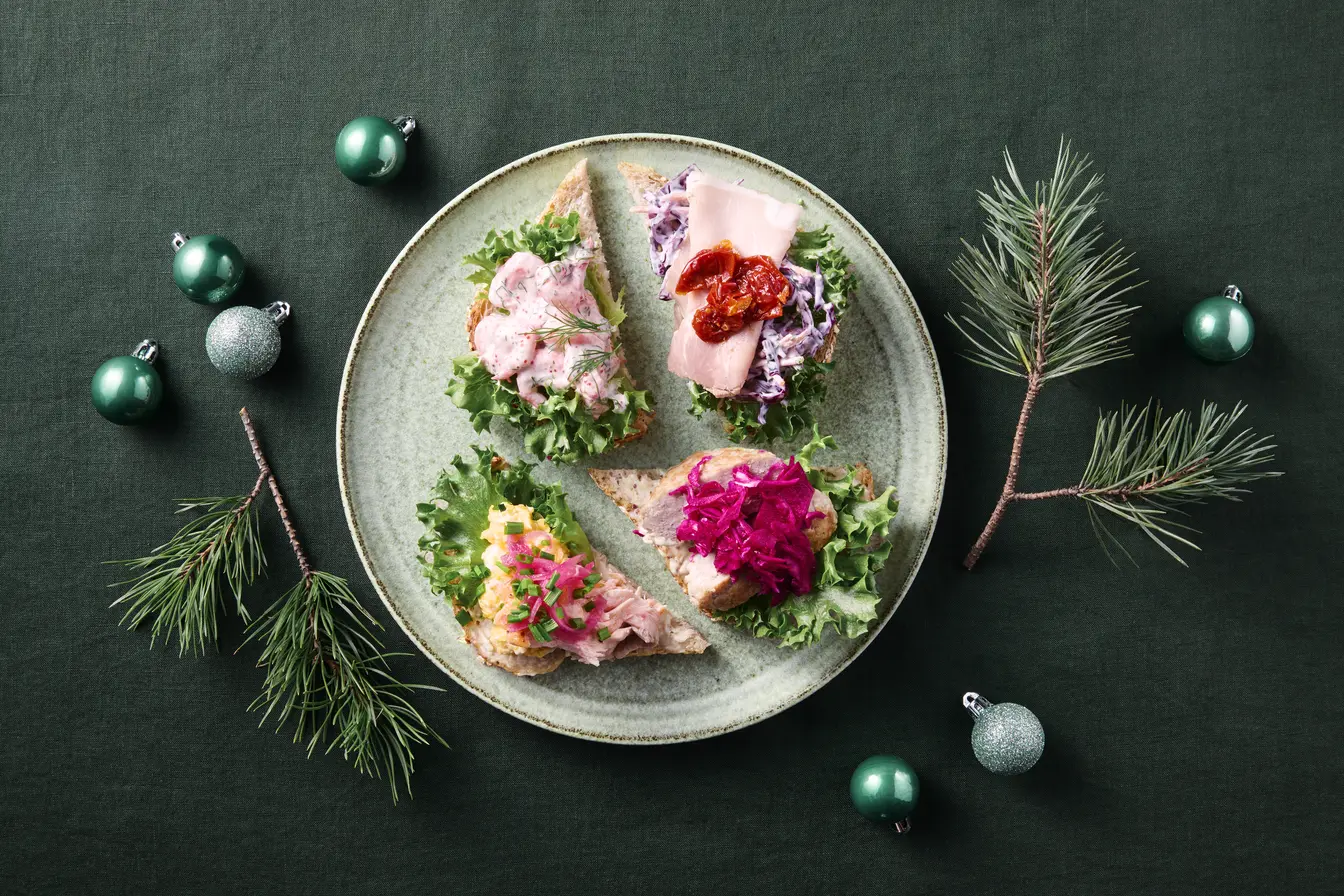 Visuelle og spennende snitter med grovt brød. En kuvert består av 4 snitter – en av hver type